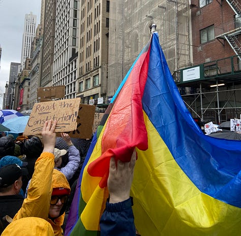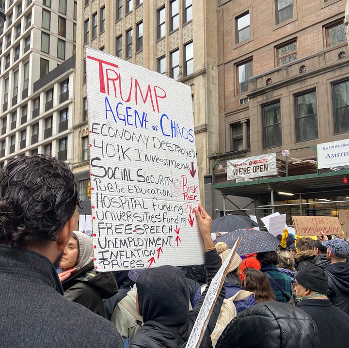 The weather in NYC at the moment is, in a word, dreadful. When it was peak Fake Spring1, I was at Governors Island and a fellow volunteer told me about a protest happening in Bryant Park the next Saturday, encouraging people to show up. On the morning of April 5, my resolve to show up was lacking due to the inclement conditions and unsurety of any difference this action would make. But I went anyway, wondering if others would show up through the cloudy skies and scattered showers.