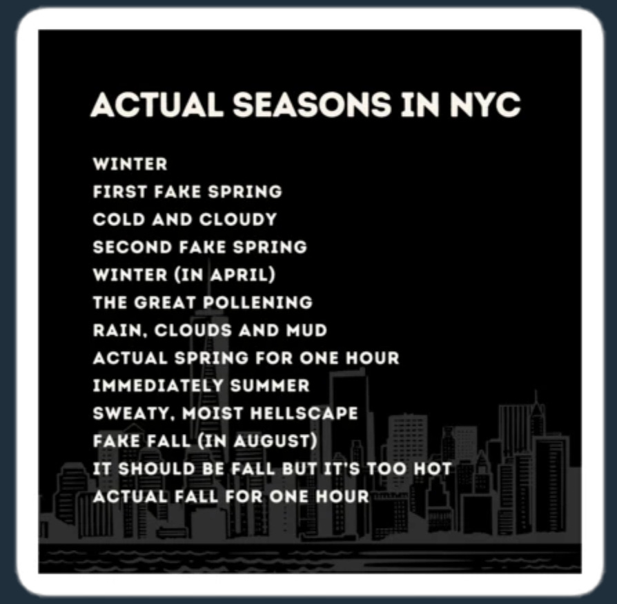 Technically “Second Fake Spring” according to New York Metro Weather.